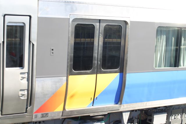 こちらは5000番台車のドア。クモヤ223はカラフルですね(^^;)